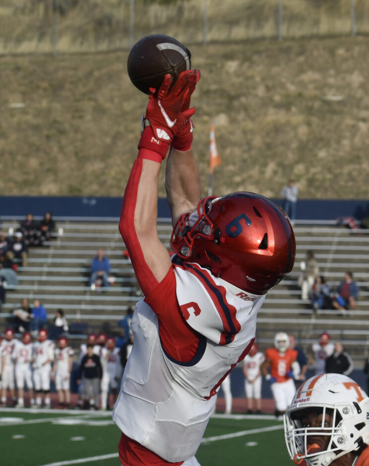 - Springville senior Drake Peterson catches a pass during the 5A second round game against Timpview in Provo on Friday, Nov. 1, 2024.