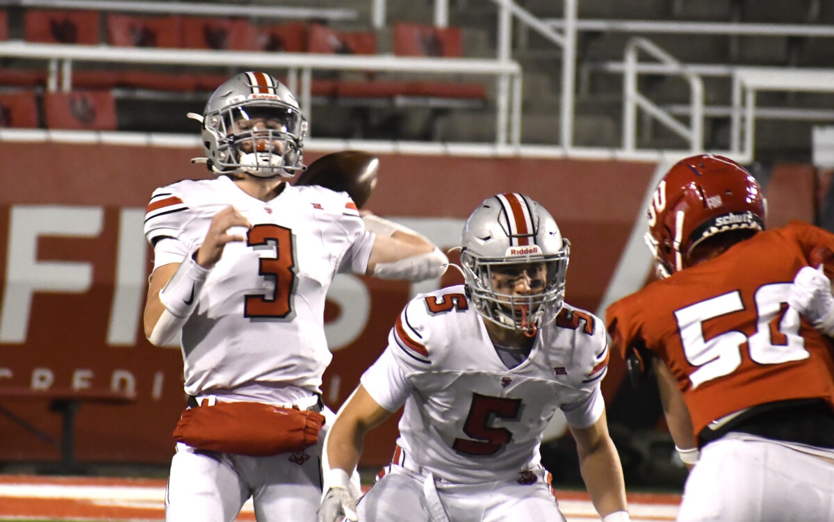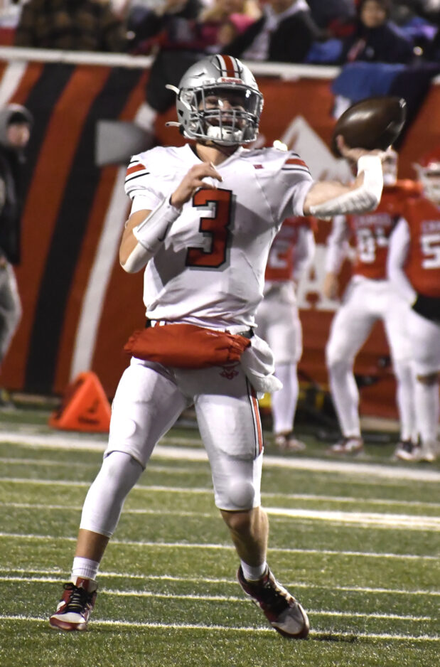 - Spanish Fork senior Mckay Smith throws a pass during the 4A championship game against Crimson Cliffs at Rice-Eccles Stadium on Thursday, Nov. 21, 2024.