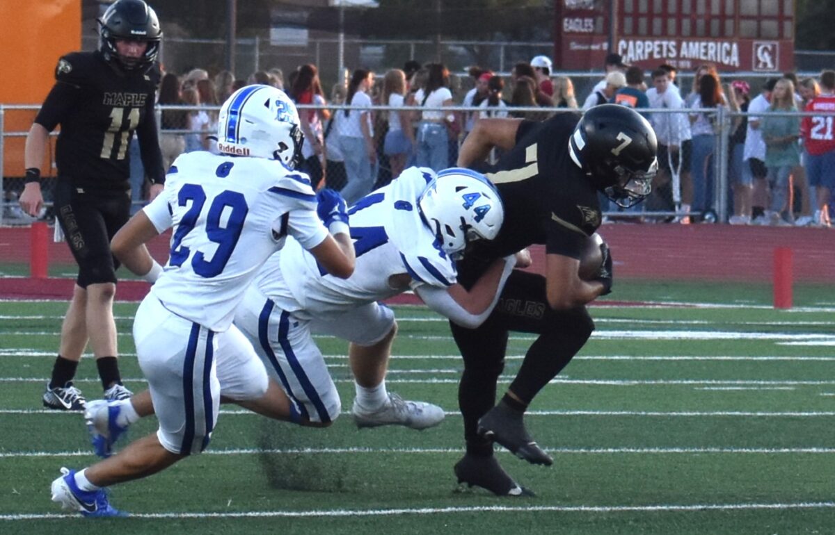 The Golden Eagles are probably a few years away from that kind of domination, but their defense is ahead of schedule. Maple Mountain was overwhelming on Friday, forcing a whopping eight turnovers and completely shutting down the Pleasant Grove offense in a 30-7 victory.