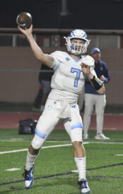 - Spanish Fork senior quarterback Mckay Smith throws a pass during the Region 8 game against Salem Hills in Spanish Fork on Friday, Sept. 20, 2024.