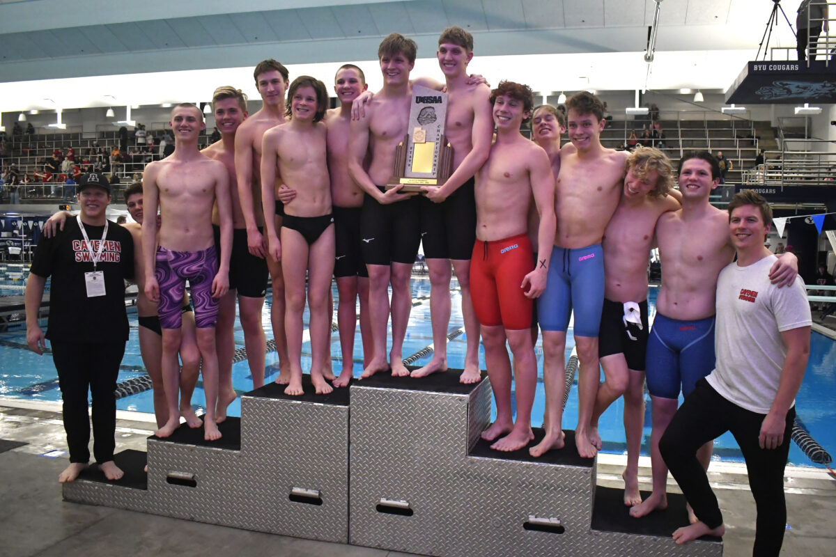 The Cavemen swimmers did just that and even with the added emphasis on safe starts, American Fork powered through the relay and set a new 6A record (3:10.54).