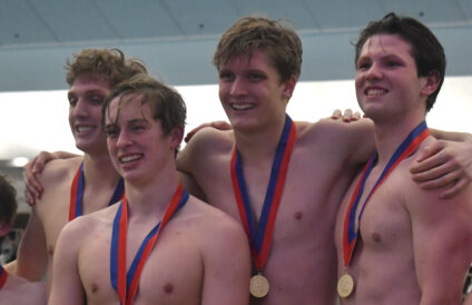 Fellingham and American Fork were locked in a dogfight with Lone Peak and Mountain Ridge for the top spot, with the Sentinals only trailing the Cavemen by four points heading into the final event: the 400-yard freestyle relay.