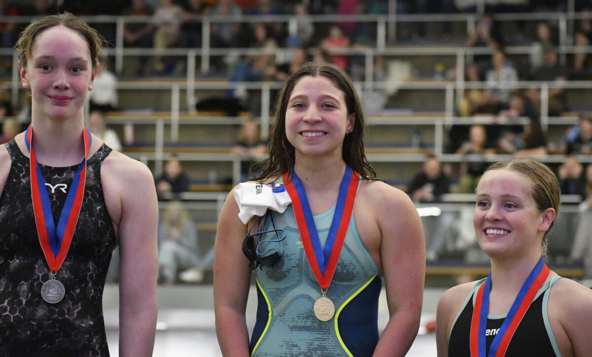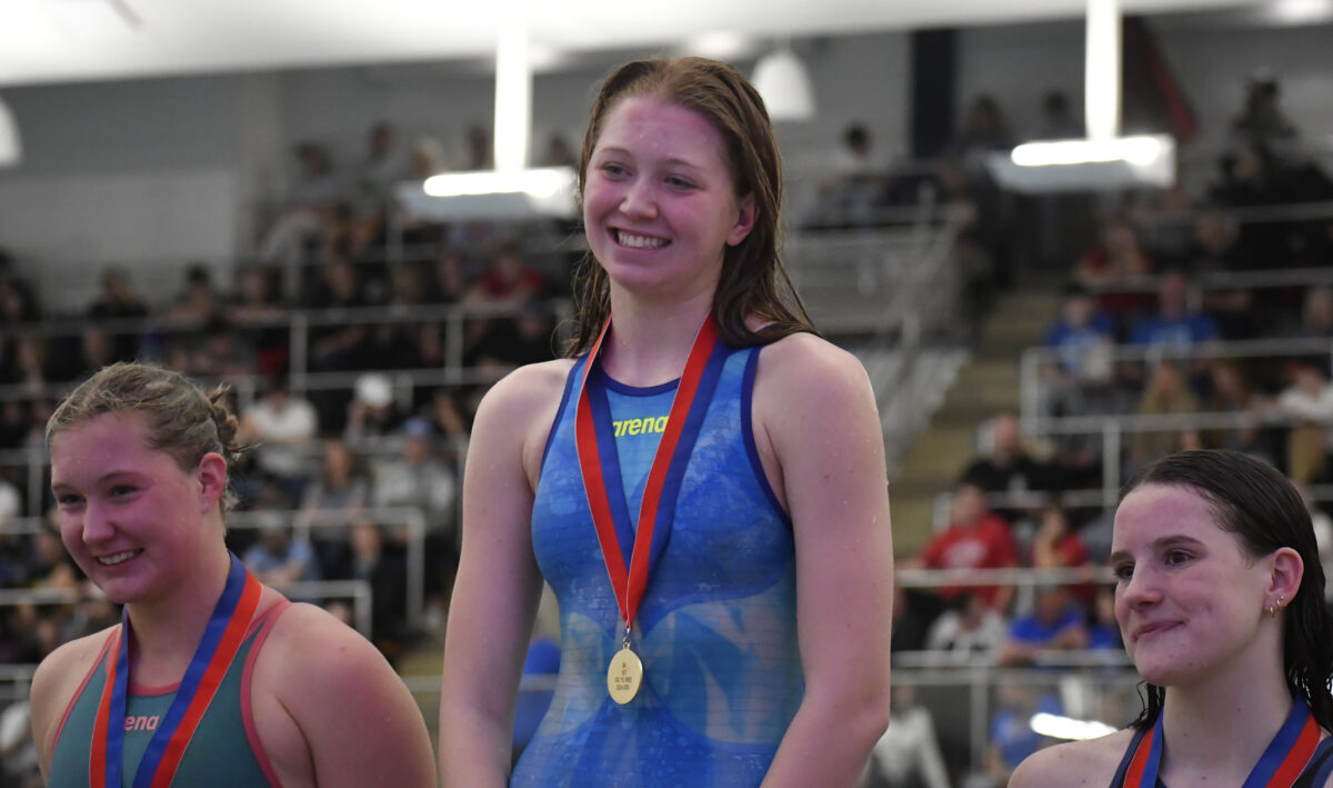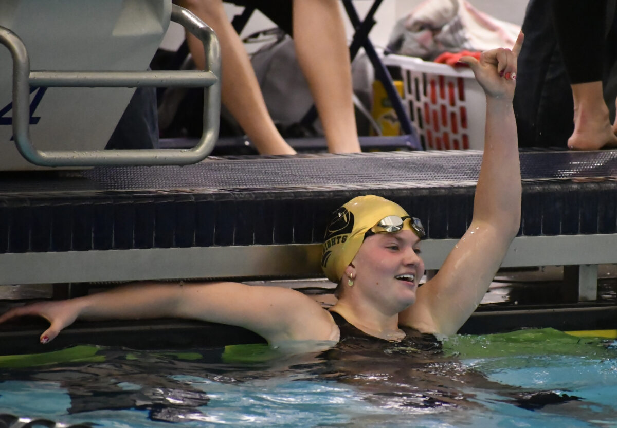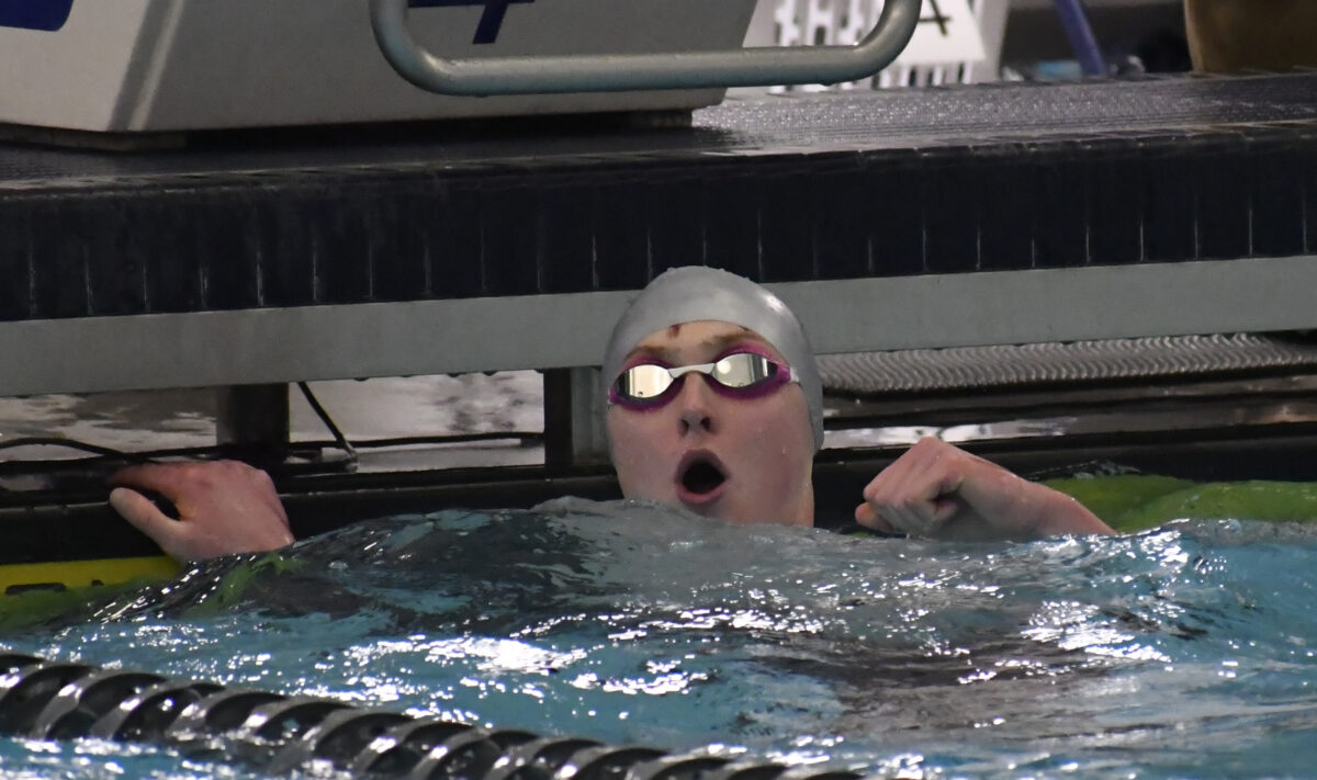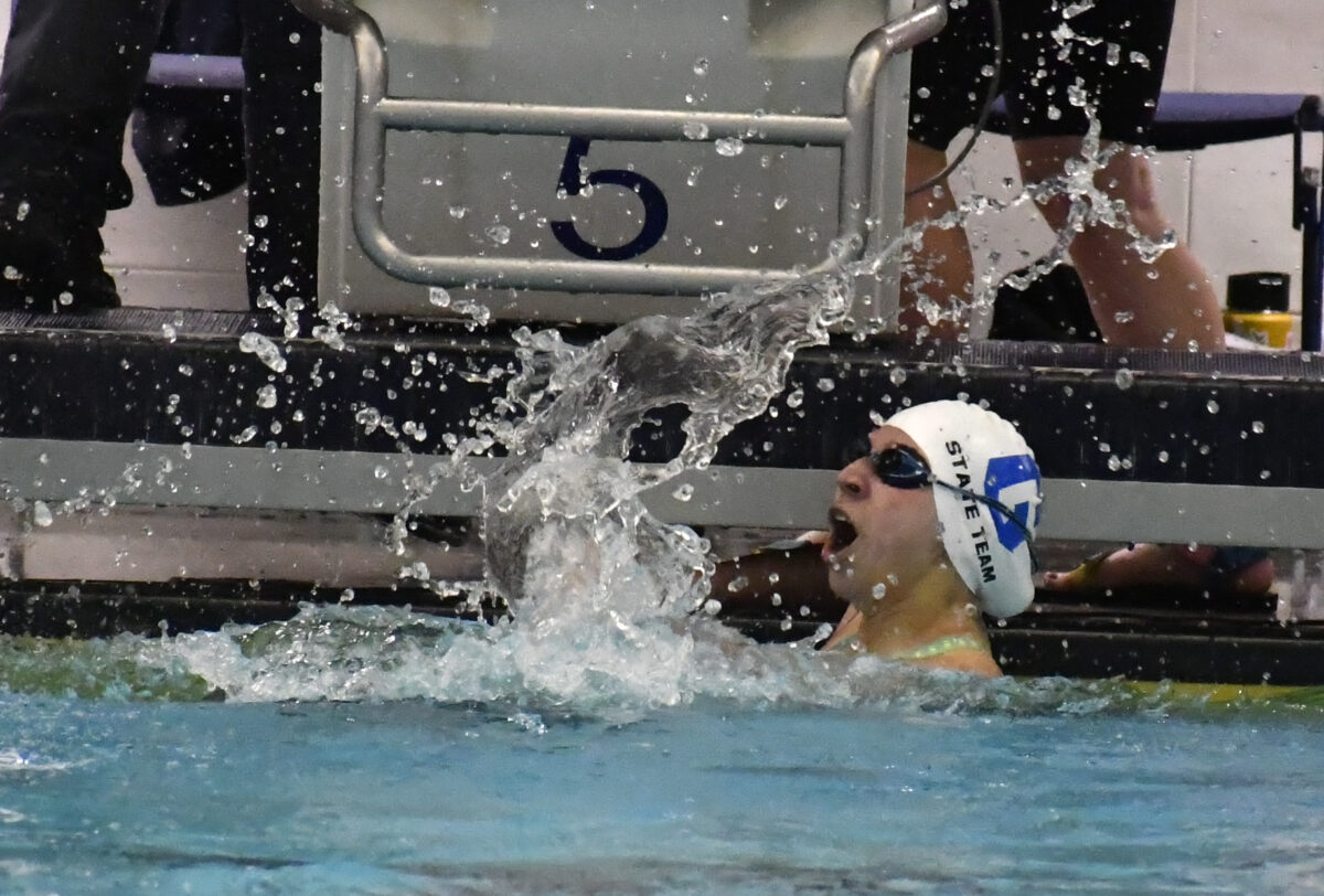Not only did she win both races on Saturday but she also smashed the state record in the 50-yard freestyle, finishing in 23.06 seconds.