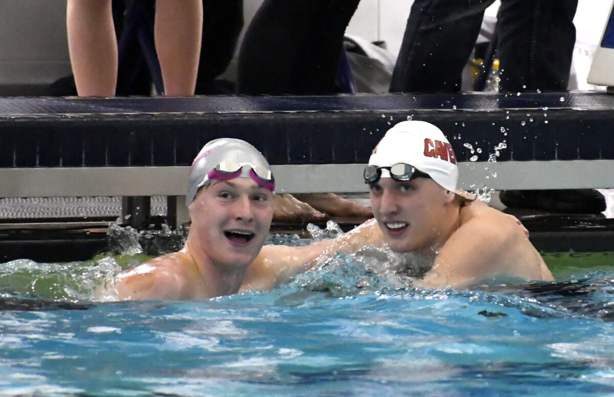 When the water settled after they both touched and looked up at the results, they showed that Fellingham had doubled Hemmert’s 50-yard freestyle prelim margin — winning by 2/100ths of a second (47.16-47.18).