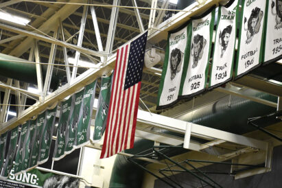 - Banners hang in the rafters of the gym at Payson High School.
