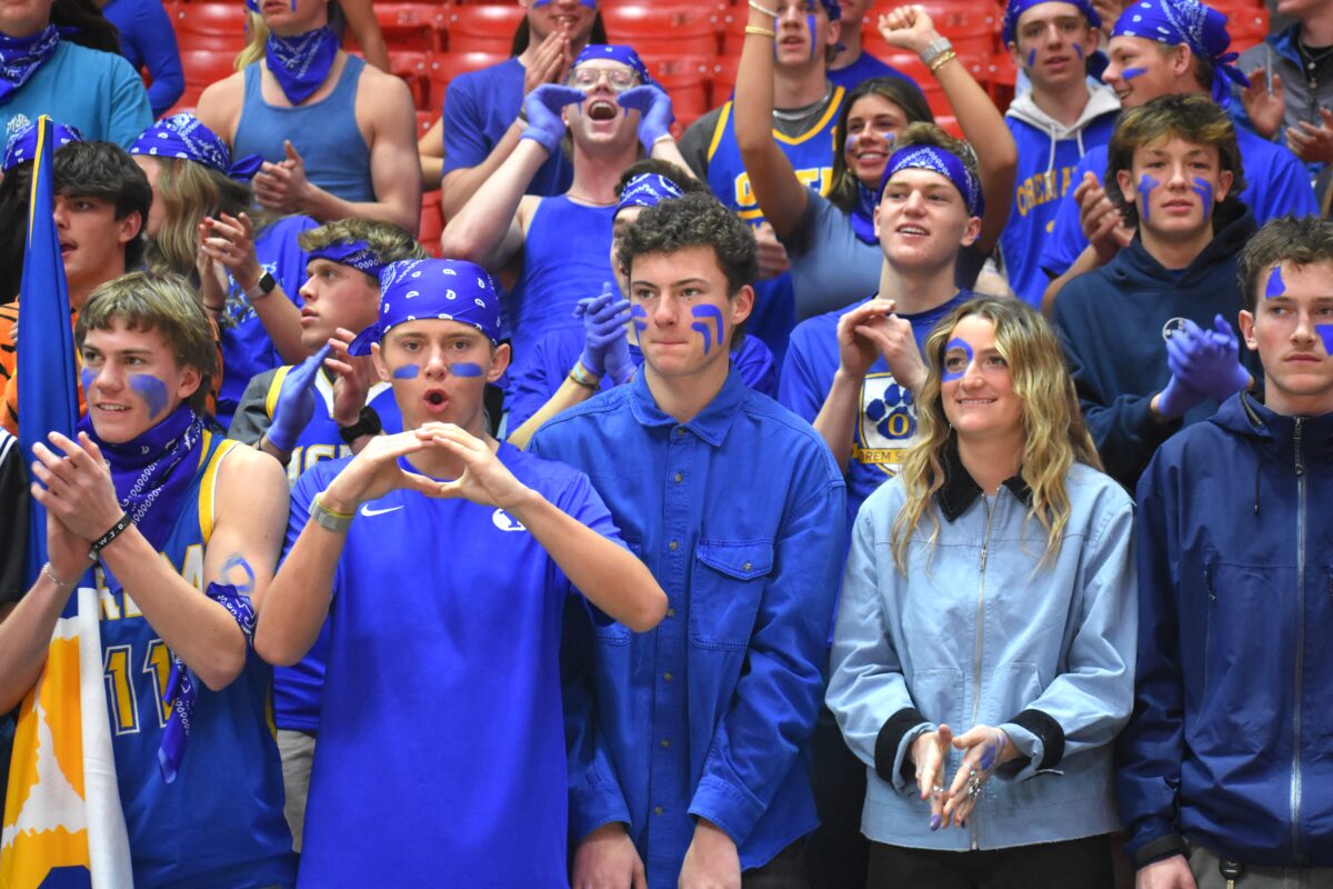 - Orem fans react during a 5A boys basketball state quarterfinal game against Brighton at the Huntsman Center in Salt Lake City on Tuesday, Feb. 25, 2025.
