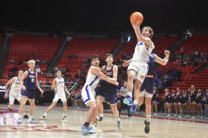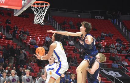 - Orem’s Chamberlain Burgess goes up for a shot against Brighton in a 5A boys basketball state quarterfinal at the Huntsman Center in Salt Lake City on Tuesday, Feb. 25, 2025.