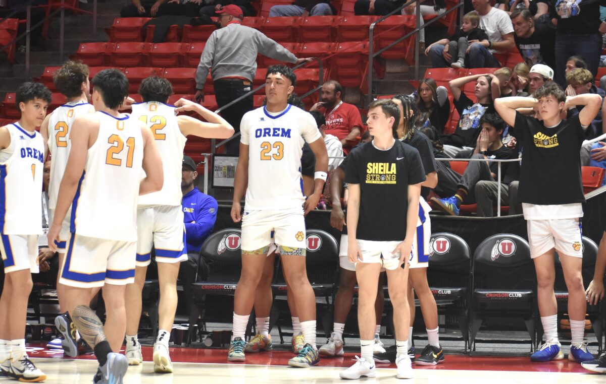 - The Orem boys basketball team reacts to losing a 5A state quarterfinal game against Brighton at the Huntsman Center in Salt Lake City on Tuesday, Feb. 25, 2025.