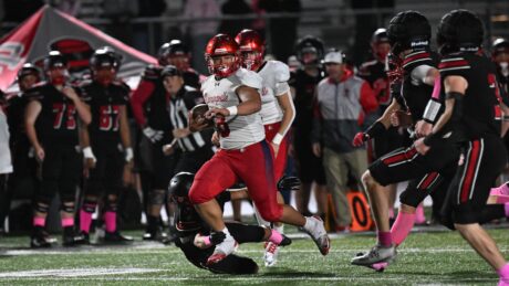 Then on defense, just before halftime, he put one of the final daggers on Springville’s blowout win by returning a fumble 23 yards for a score. It wasn’t just the awareness to pick up the ball but despite being surrounded by the Spanish Fork offense, he burst out of the scrum to paydirt.