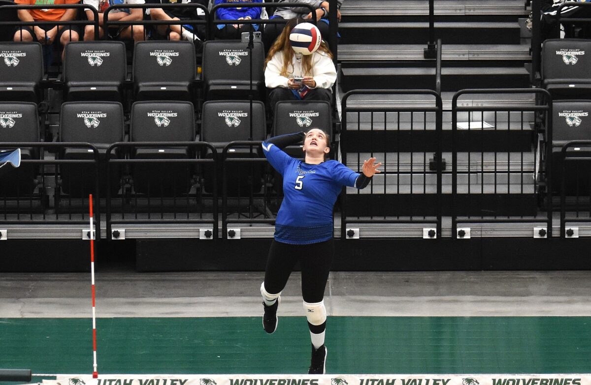 Mountain View handled No. 13 Mountain Crest (25-14, 25-17, 25-19) behind a huge game from senior Jaycee Carlson, who posted 16 kills. Provo rode the strong right arm of Nevaeh Magalei, who totaled 23 kills in a 3-1 (22-25, 25-12, 25-21, 25-10) victory against No. 11 Pine View.