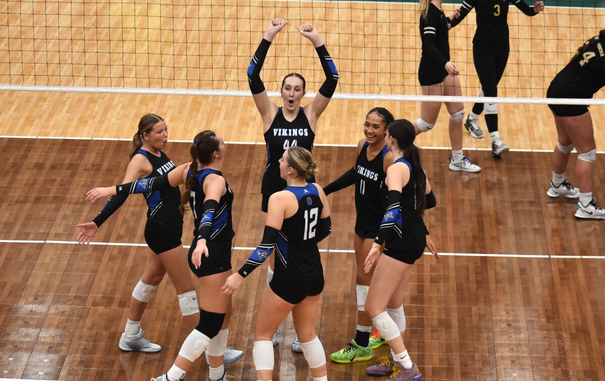 The Vikings were especially impressive in the third set, pressing to a 12-1 lead after a kills from Lexi Brown and Taytum Nelson and cruising to the win.
