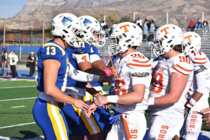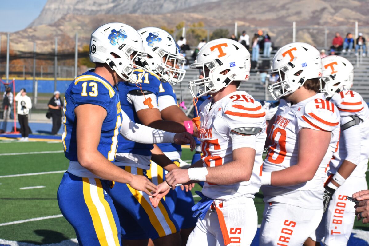- Captains for Orem (left) and Timpview shake hands before the start of a 5A football state second round game n Friday, Oct. 31, 2025.