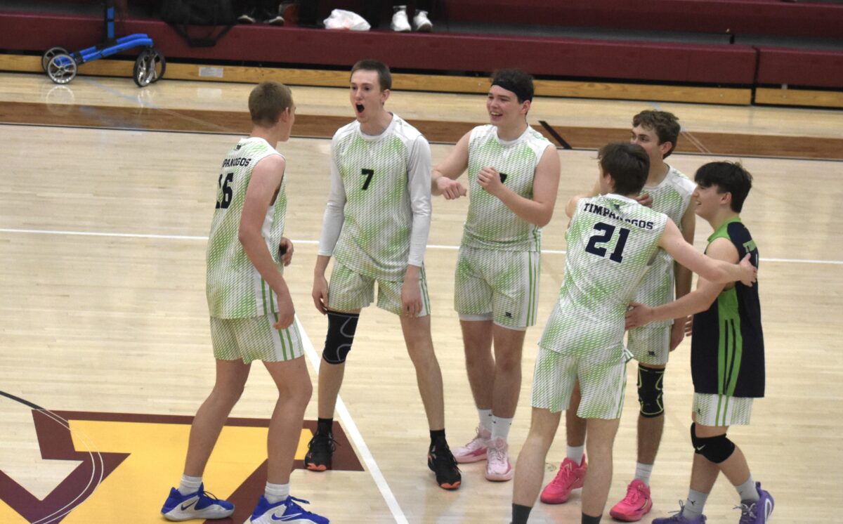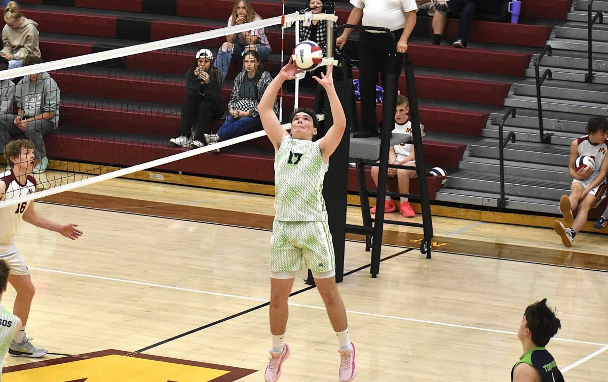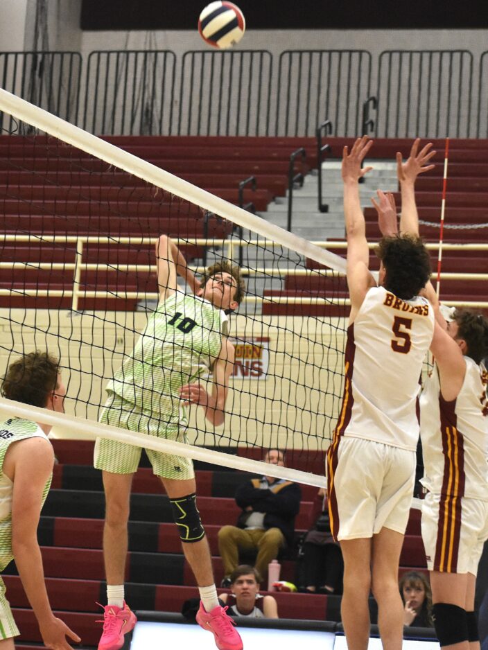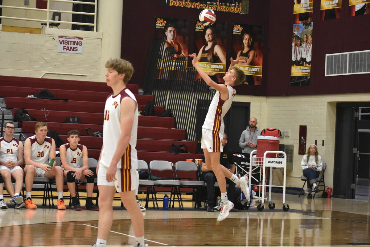 Mountain View got out to a 19-13 lead in the fourth set after back-to-back kills from Carson King. The Timberwolves rallied to trail 21-19 but the Bruins closed out the match on a 4-1 run, kills from Nelson and Cohen Tiek finishing things off.