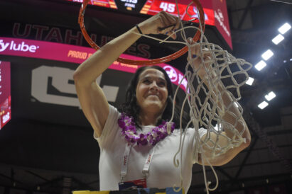 - Pleasant Grove head coach Angela Villa cuts down the net after winning the 5A state championship game against West at the Huntsman Center in Salt Lake City on Friday, Feb. 27, 2026.
