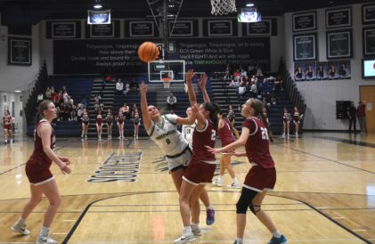 The game was tied five times in the fourth quarter. Timpanogos took a 44-42 lead with 1:55 to play on a pair of free throws from MaKayla Boyer but Liv Rasmussen drove in for a score and a 44-44 tie moments later.