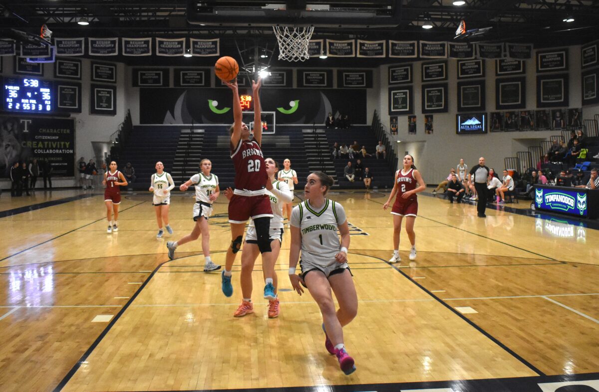 Timpanogos had a 32-22 advantage early in the third on a 3-pointer from Maddie Puckett (the T-Wolves only triple in the second half) but the Bruins erupted on a 12-0 run, keyed by three baskets on offensive rebounds from Carlson. Mehani Suguturaga scored on the break to push Mountain View to a 33-32 lead and it was 34-32 entering the final quarter.