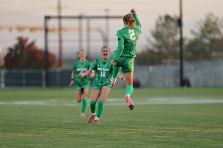 Ruby Hladek scored twice and Faith Webber added a late header as Utah Valley blanked Utah Tech, 3–0, on Monday night in the regular-season home finale at UCCU Stadium.