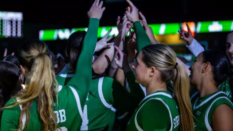 The Utah Valley women's basketball team breaks a huddle before a game during the 2025-26 season.RENO, Nev. – Utah Valley fell to Nevada, 71-42, on Monday night inside the Lawlor Events Center.