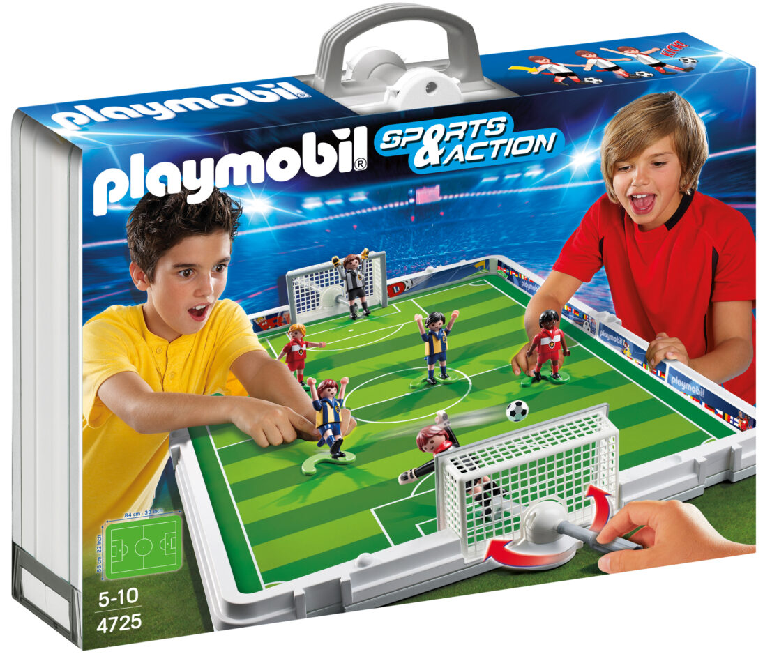 Take Along Soccer Match — This miniature arena allows sports lovers to line up their tiny players for primetime action in anticipation of the perfect kick or header. After the winning goal is scored, simply fold the field in half for portable, on-the-go play. Playmobil; $59.99; Ages 5 to 10