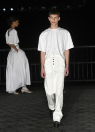 NEW YORK– Sailboats wafted by on the Hudson River and the setting sun sparkled on the water as Proenza Schouler celebrated a return to in-person fashion shows against the spectacular setting of New York’s buzziest waterfront locale, Little Island.