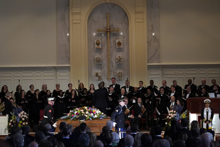 President Joe Biden and first lady Jill Biden, their longtime friends, joined them in the front row, along with former President Bill Clinton and former Secretary of State Hillary Clinton and former first ladies Melania Trump, Michelle Obama and Laura Bush. Vice President Kamala Harris and second gentleman Doug Emhoff paid their respects, as did Georgia’s U.S. senators and Gov. Brian Kemp and his wife Marty. More than 1,000 people, including a sizeable contingent of Secret Service agents, filled the sanctuary. Former Presidents Donald Trump, Barack Obama and George W. Bush were invited but didn’t attend.