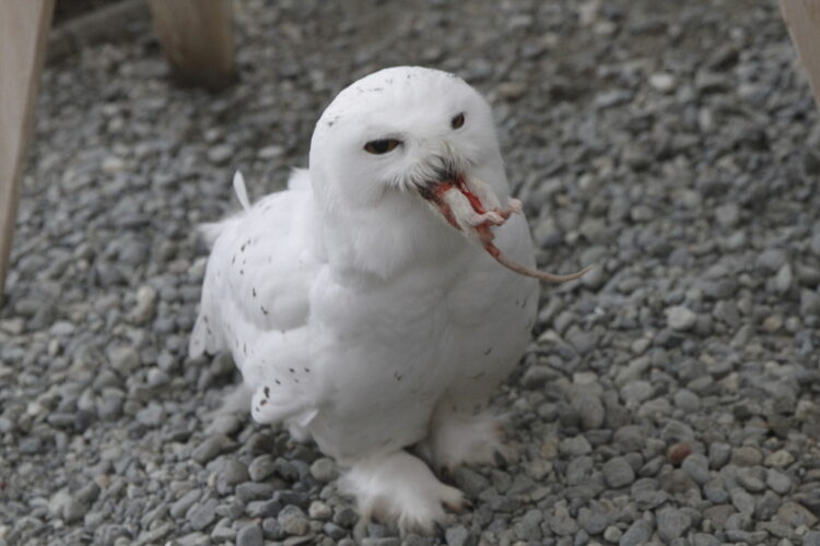 The videos of raptors like Ghost, a snowy owl that swallows the rat whole, or a peregrine falcon named Breland, which keeps one talon on the rodent and pecks away at it until it’s gone, will be emailed to donors.