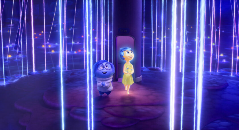 This image released by The Walt Disney Studios shows the characters Sadness, voiced by Phyllis Smith, left, and Joy voiced by Amy Poehler, in a scene from "Inside Out 2." (The Walt Disney Studios via AP)