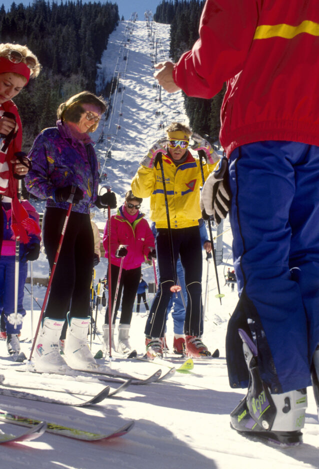 EDGES: The second-most used term in the instructor’s vocabulary. The right and left edges of each ski. Press one or the other into the snow to make a controlled downhill turn.