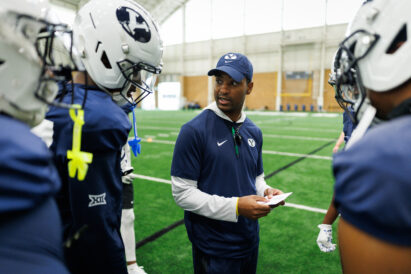 New BYU cornerbacks coach Lewis Walker instructs players during a session of spring practice. March 6, 2026